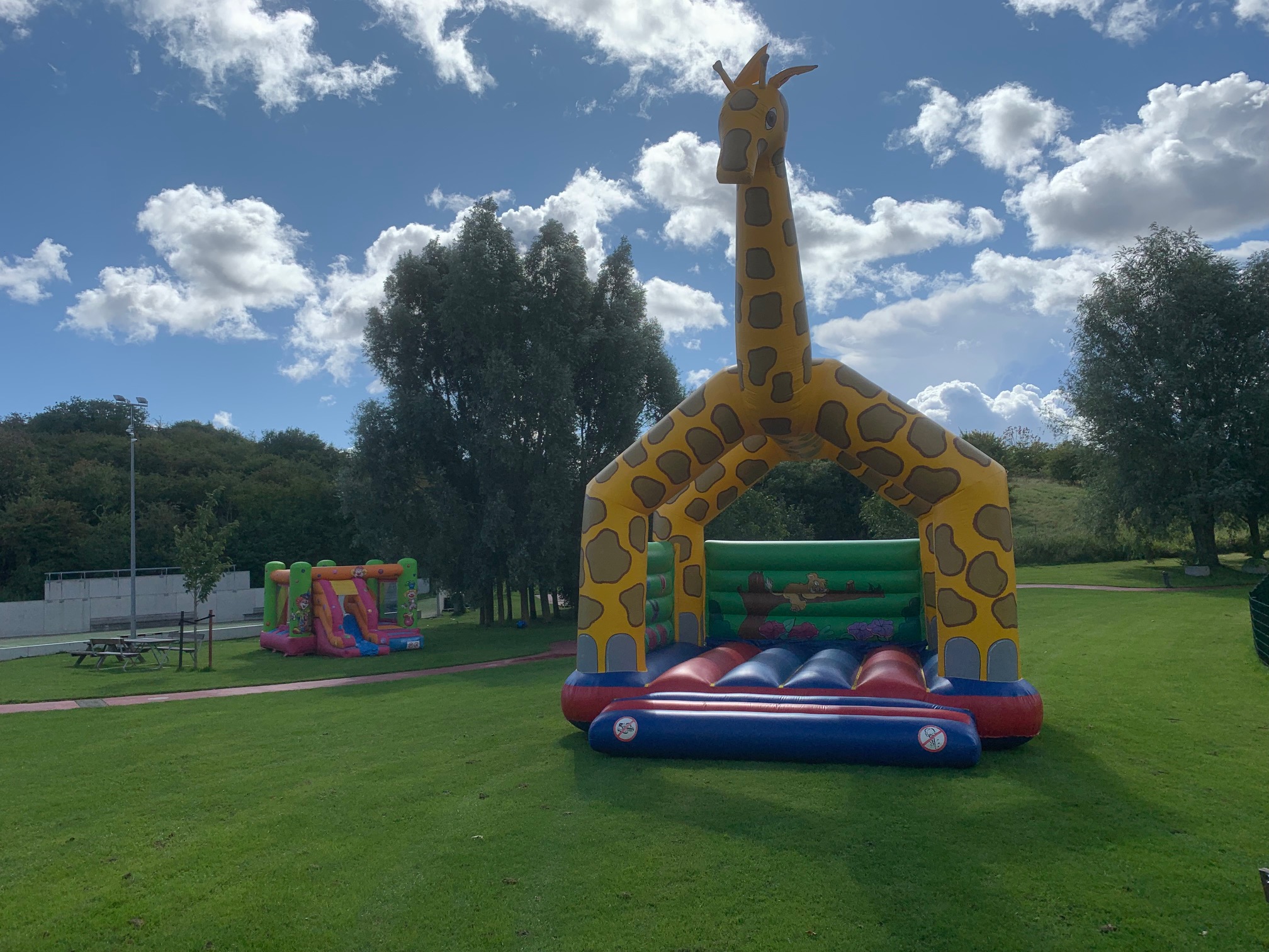 Har du set Giraffen? Den rager hele 9 meter op i luften og er et kæmpe hit blandt børnene! Vores Giraffen hoppeborg er perfekt til byfester, markeder, institutioner og store arrangementer, hvor mange børn skal underholdes på én gang. Her er der masser af plads og høj hoppeeffekt – så børnene kan konkurrere om, hvem der hopper højest! 🎉